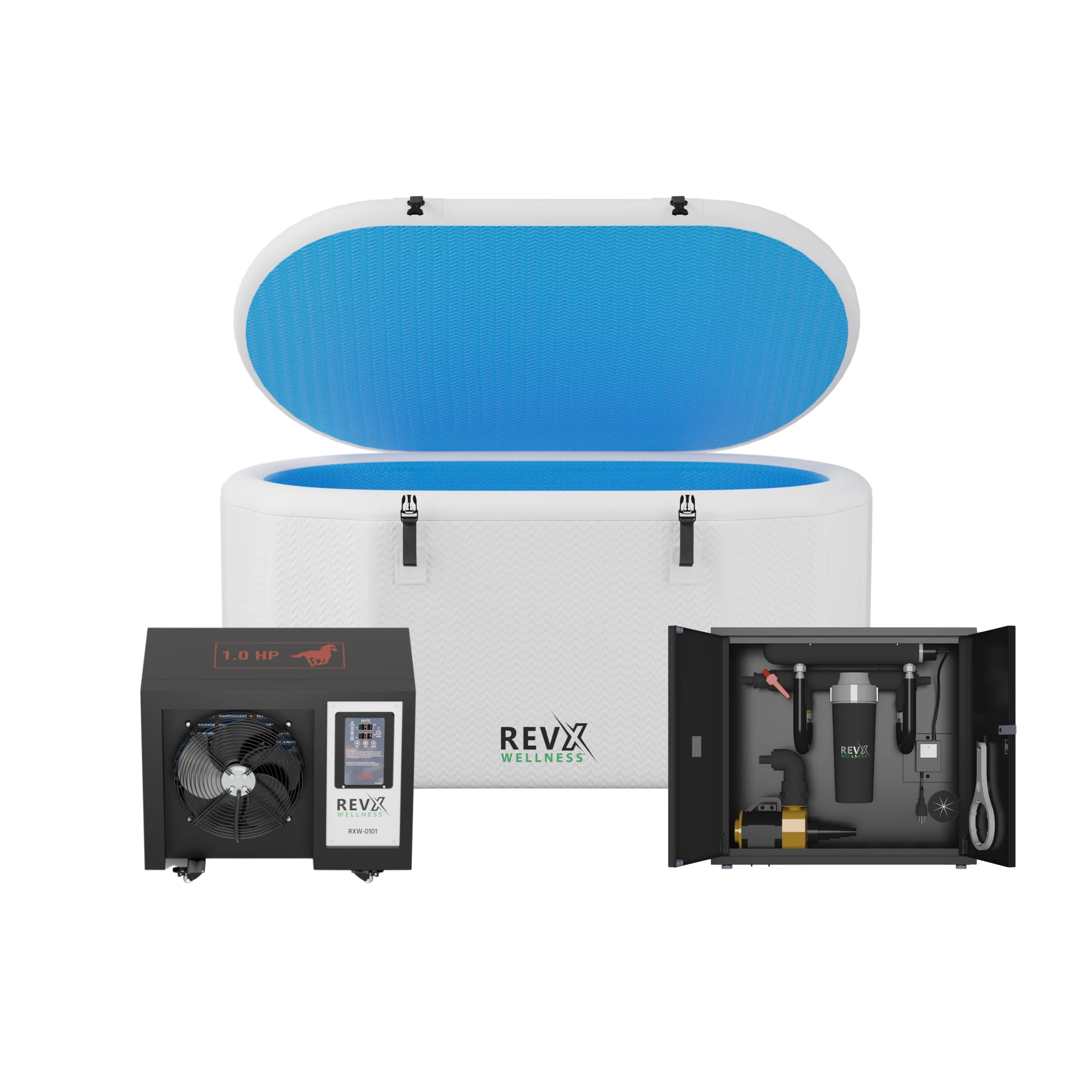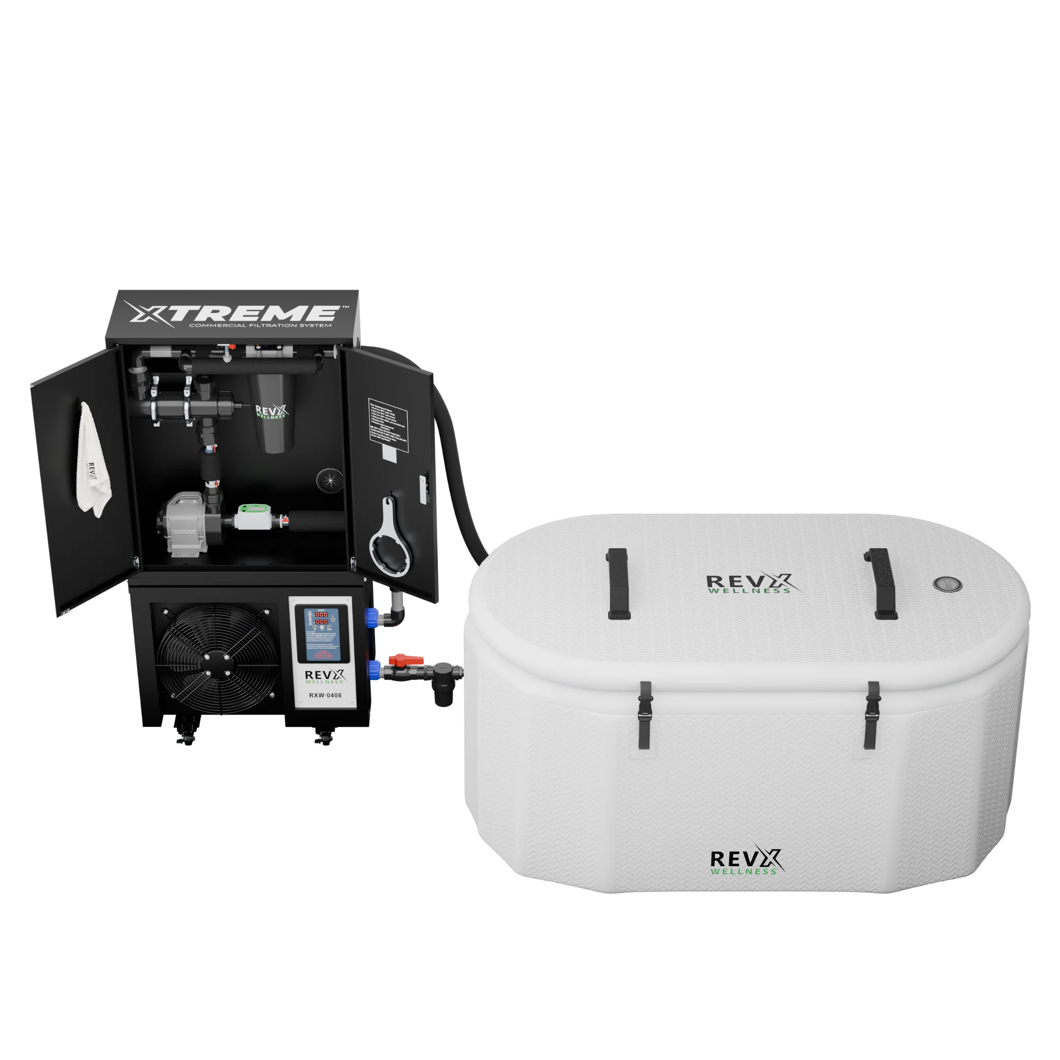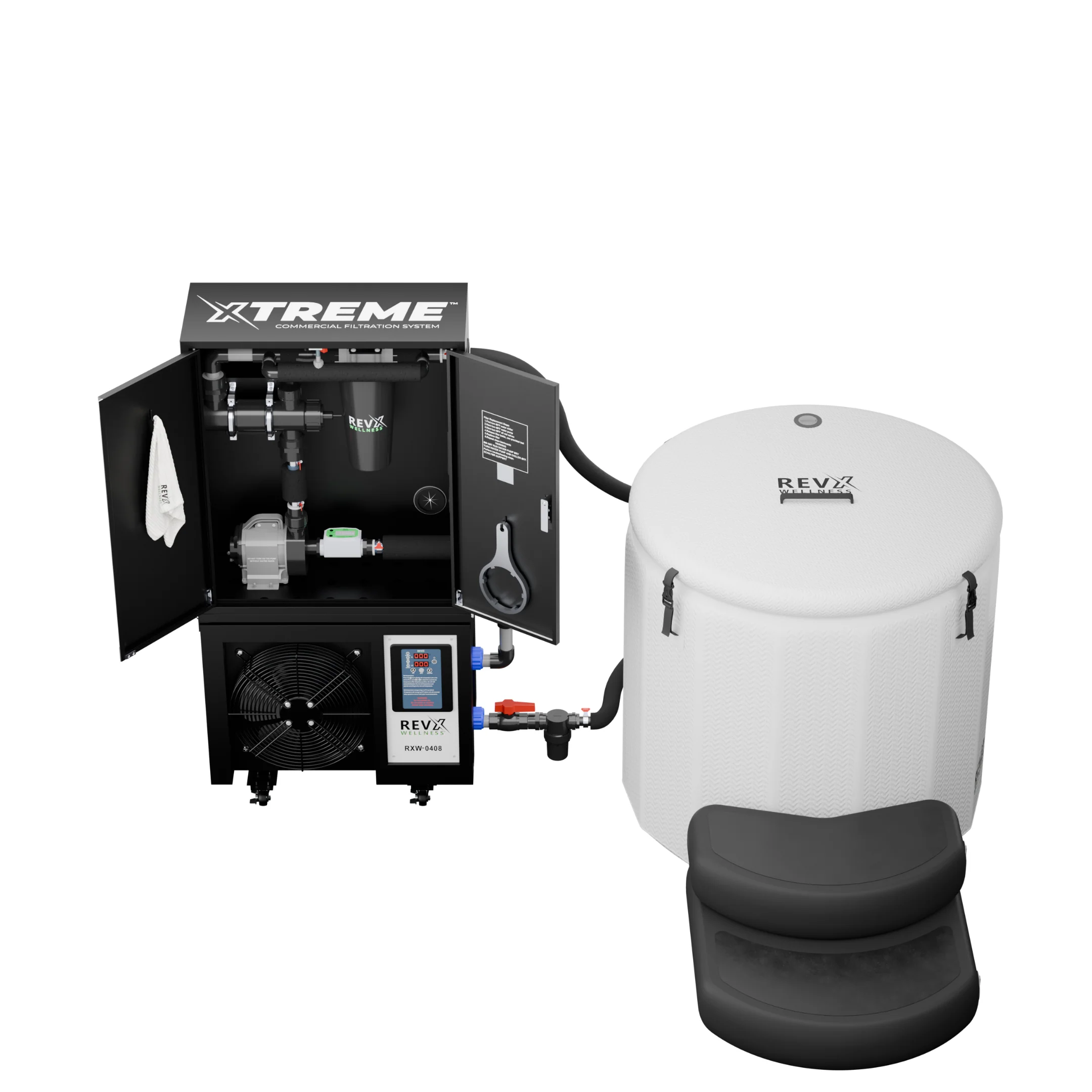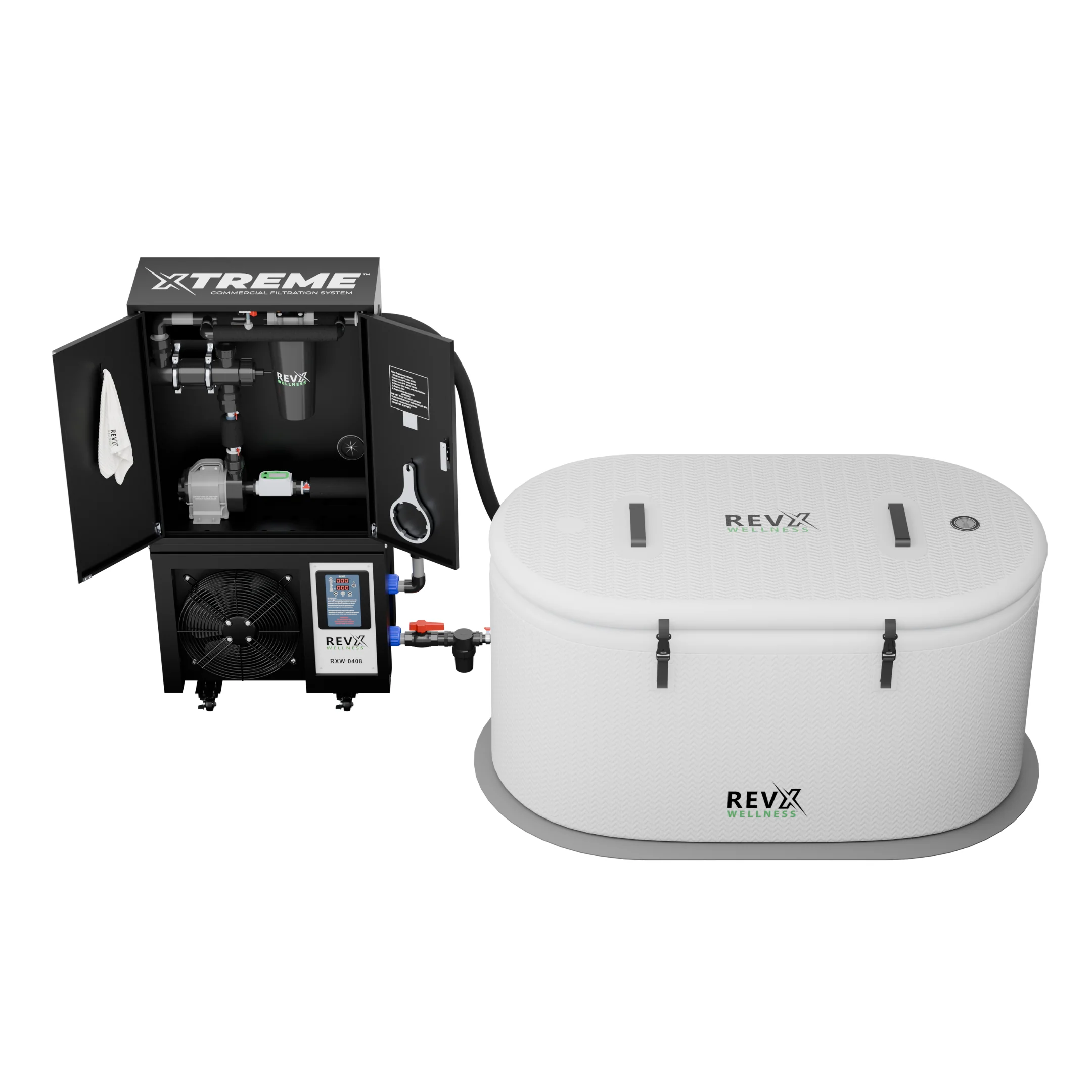 RevX Wellness offers a premium selection of cold plunge devices engineered for performance-driven recovery. Each unit is meticulously crafted to deliver powerful, consistent cooling and robust construction, ensuring it withstands both personal and professional use. The RevX XTREME series includes the XTREME Tub Classic Bundle, XTREME Tub Deluxe Bundle, and XTREME Barrel Bundle, all equipped with advanced cooling technology designed for those who demand rapid, precise temperature control and maximum durability. These high-capacity systems deliver an immersive cold therapy experience, ideal for athletes and biohackers seeking faster recovery and enhanced mental fortitude.
