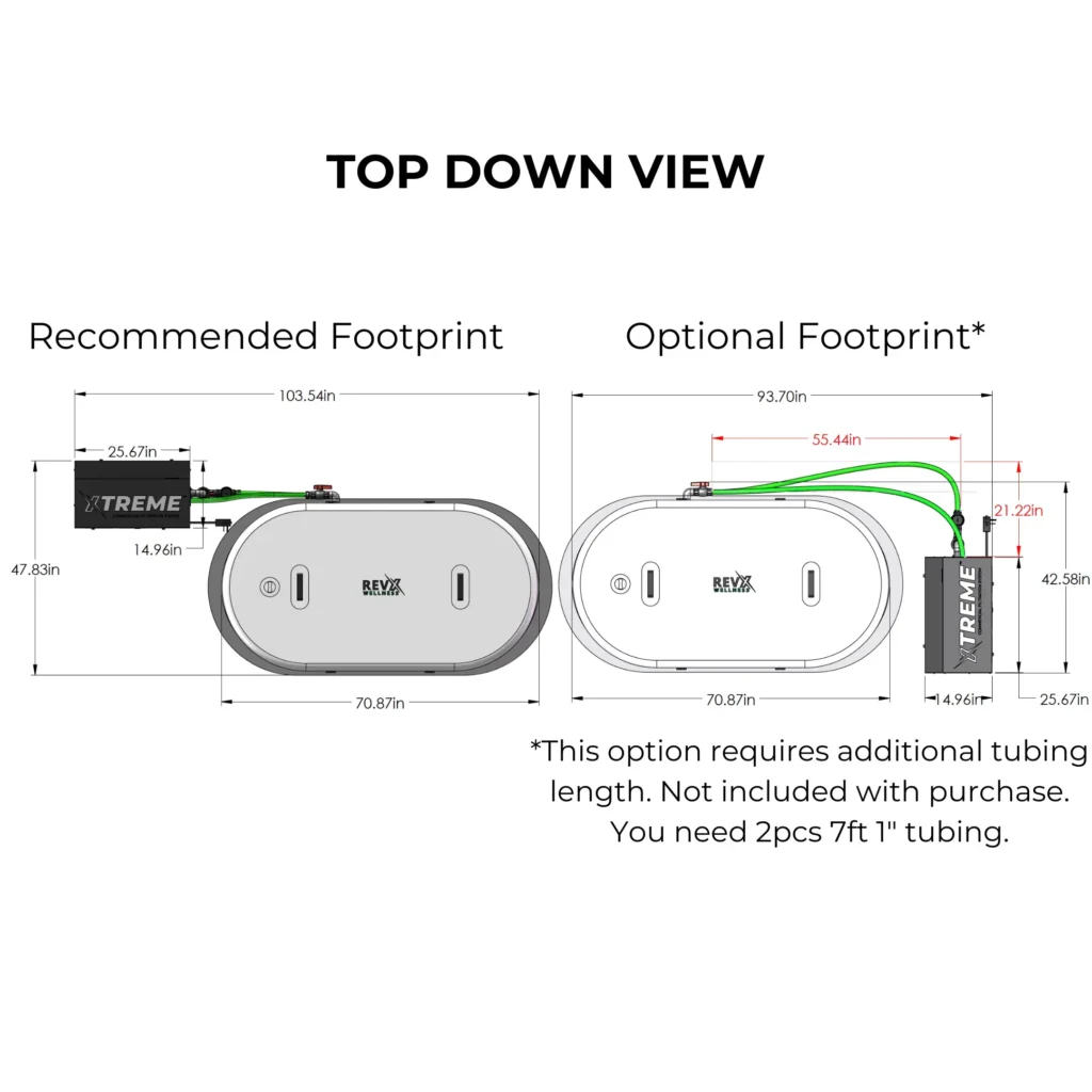 RevX Wellness™ is offering: RevX XTREME V2 Tub Deluxe Bundle, complete with a separate chiller, commercial-grade water filtration, and tubing. Extra-large (XL) tub, big enough for 2, and 1.5HP RevX Chiller included.